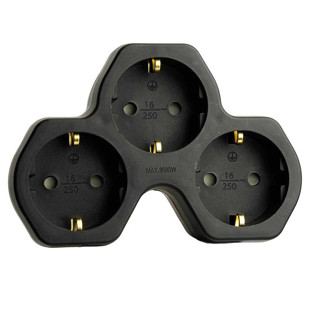 Сетевой разветвитель STEKKER ADP16-13-21 с заземлением, количество присоединяемых устройств 3, номинальное напряжение 250В, номинальный ток 16А, материал пластик, цвет черный, IP20