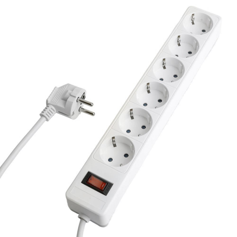 Сетевой фильтр 6-местный с/з STEKKER HM20-61-02 3x1мм2, 1,8 м, серия Optima, белый 50095 Сетевые фильтры