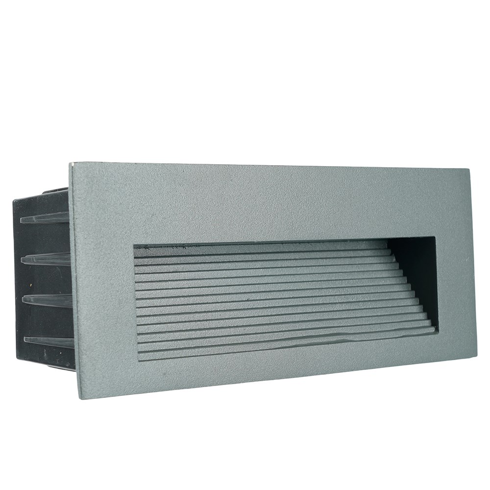Светильник встраиваемый светодиодный, для лестничной подсветки (ДВУ) FERON LN012-1, 5W 4000К (белый натуральный), 110-265V, 80Lm, IP65, угол рассеивания 120°, цвет серый, корпус алюминий, пластик, рассеиватель стекло, 170*55*70 мм, монтажн.отв. 160*60 мм.