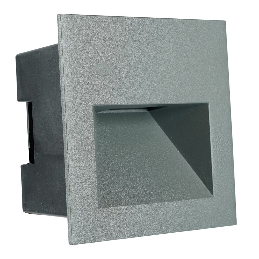 Светильник встраиваемый светодиодный, для лестничной подсветки (ДВУ) FERON LN013-1, 3W 4000К (белый натуральный), 110-265V, 80Lm, IP65, цвет серый, корпус алюминий, пластик, рассеиватель стекло, 86*86*63 мм, монтажн.отв. 68*68 мм.