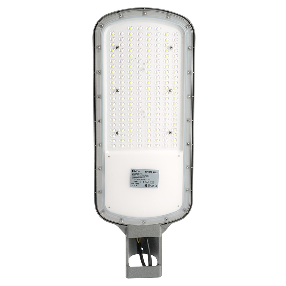 Уличный светильник консольный светодиодный, на столб (ДКУ) FERON SP3070, 120W, 5000К (дневной), 90-300V/50Гц, 19200Lm, IP67, угол рассеивания 120°, 180LED*SMD3030, класс защиты 1, раб.t -55°..+50°С, цвет серый, корпус алюминий, 572*210*75мм,
