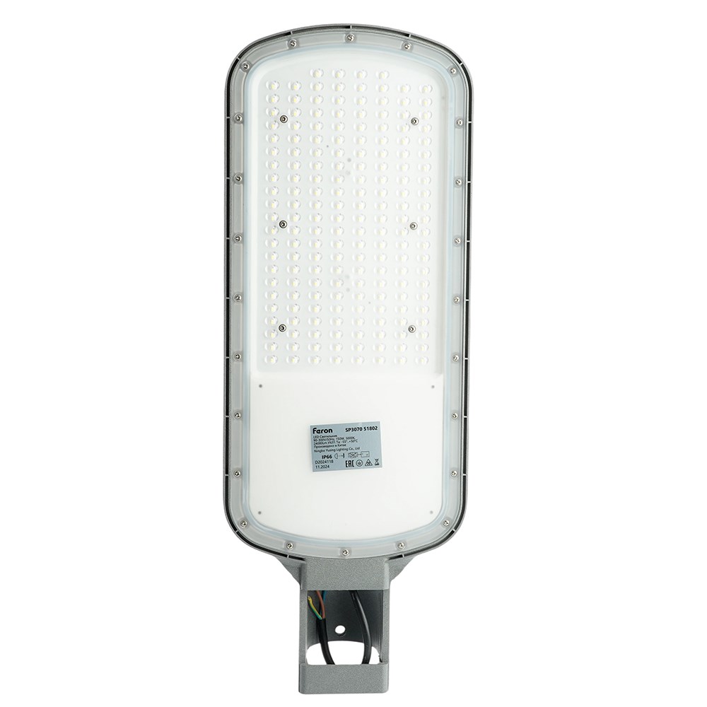Уличный светильник консольный светодиодный, на столб (ДКУ) FERON SP3070, 150W, 5000К (дневной), 90-300V/50Гц, 24000Lm, IP67, угол рассеивания 120°, 180LED*SMD3030, класс защиты 1, раб.t -55°..+50°С, цвет серый, корпус алюминий, 572*210*75мм,
