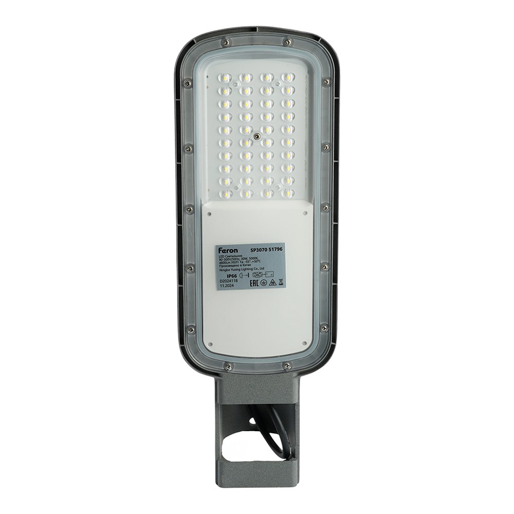 Светодиодный уличный консольный светильник Feron SP3070 30W 5000K 90-300V, серый 51796 Уличные светодиодные консольные светильники