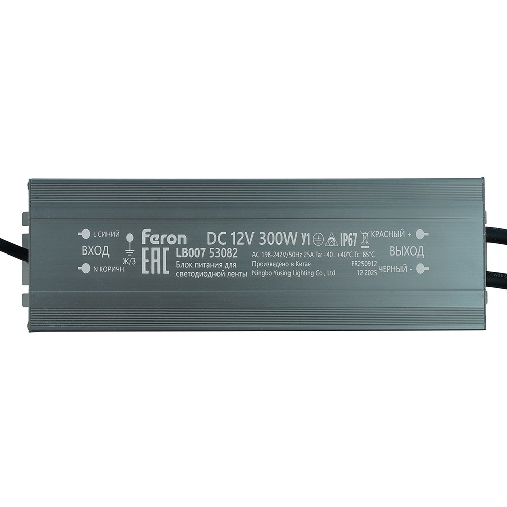Трансформатор электронный для светодиодной ленты 300W 12V IP67 (драйвер), LB007 FERON 53082 Блоки питания для лент 12V